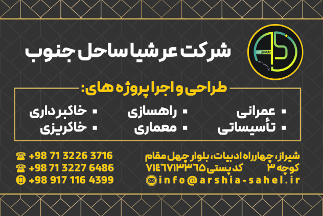 دفتر مرکزی: شیراز – چهارراه ادبیات – بلوار چهل مقام – کوچه 3 – کد پستی : 7146713365